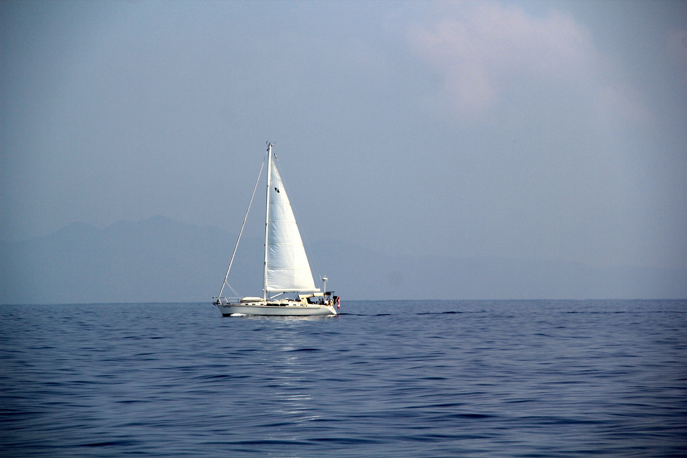 Our trip was quite rough for the first two days; not very pleasant, but bearable. The third day was spectacular, an absolute gift: sunshine, calm seas, plenty of dolphins traveling with us for hours: a veritable made-to-order day! Totally perfect, just devoid of the wind we needed to sail… So we resigned to motor-sailing the whole way.