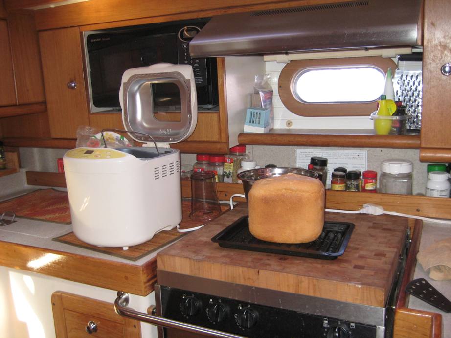 While in the harbor, Lori went nuts with her bread machine and made two loaves of bread and mixed several balls of dough for baking later. I see focaccia in my near future…
