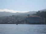 The trip was pretty fast, although there was no wind and we had to go off shore to empty the sewage tanks… (OK not everything on a sailboat is fun). We motored the entire trip and arrived at the entrance to Avalon Harbor at 3pm and were immediately met by the Harbor Patrol Boat. The Officer was great… We were assigned a mooring and several minutes later were tied off.
