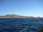 At 0830 hrs. on Thu Nov 4th, we rounded the southern end of the Baja Peninsula and began the five mile eastbound trip to Cabo San Lucas. Shortly after rounding the Cape we were struck with gusty winds straight on the nose of the boat. We decided with such a short distance to go we would strike the sails and go in bare poles.