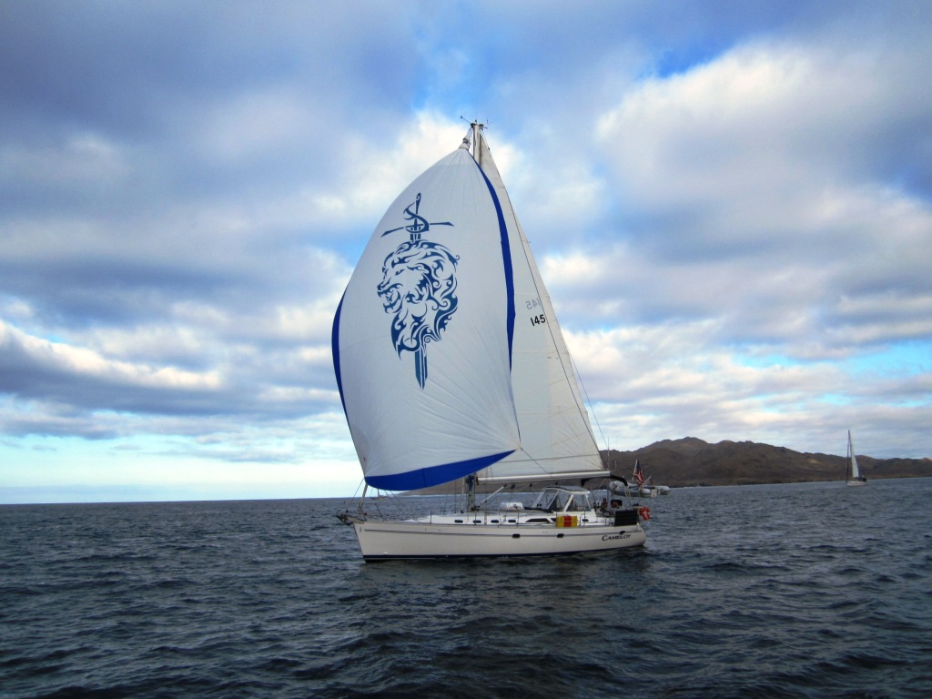 At 0800 PDT on Saturday Oct. 30th we started the second leg of the Rally from Turtle Bay to Bahia Santa Maria, a straight line distance of 232 NM. The start was slow, even with the spinnaker up we were only able to make 3 knots of boat speed in very light winds. 1 hour 40 minutes into the race, the Rally Committee decided that they would allow us to motor until we found better winds. After 8 hours of motor-sailing, the wind freshened and the race was back on. The wind was from the west to northwest and gave us some of the best downwind sailing I have ever had. At times, we saw as much as 10.0 knots of boat speed, and the boat was frequently surfing waves (Not too shabby for a 37,000 lbs. sailboat).