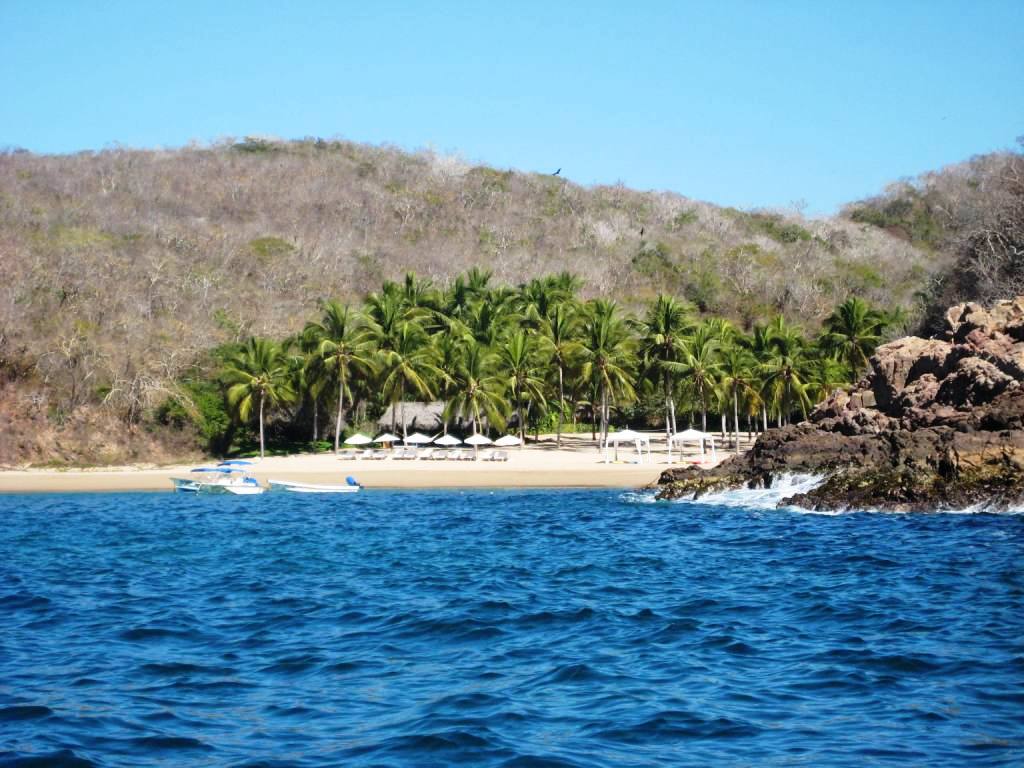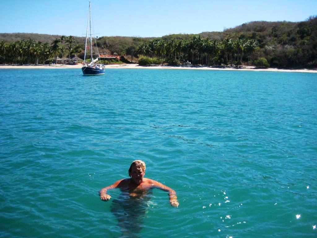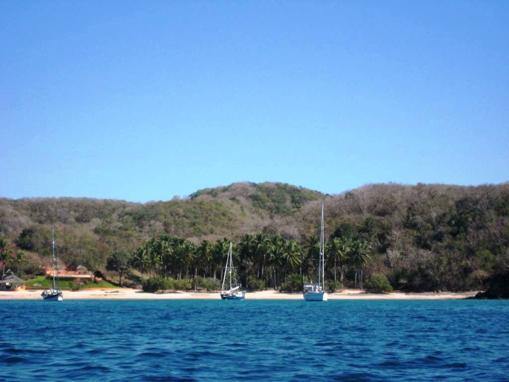 We want to be in Zihuatanejo (about 200 miles further South) by the end of January, in time for the annual SailFest that starts on February 1st and lasts for a week. Tom comes up with a tentative “schedule” (oh, that sounds like blasphemy!). We agree that we need to keep moving, stopping only briefly at some of other beautiful places along the way in order to make our deadline (another blasphemous word!). I agree only because Tom PROMISED we’ll take our sweet time on our way back up later on. We’ll have time to visit more thoroughly whatever places we miss and spend however many days we want in the places we like most. Sounds reasonable, and yet I feel deprived… It’s a good thing that Annie & Hugh come over for some company, we spend a couple of fun hours together debating itineraries, sharing “how did you guys meet” funny stories and generally having a good time. We’re all going to leave in the morning, this time to get to Bahia Tenacatita, just a mere 26 miles down the coast. The prospect of a new place to see pacifies me a little, but I really want to come back here and STAY for a while.