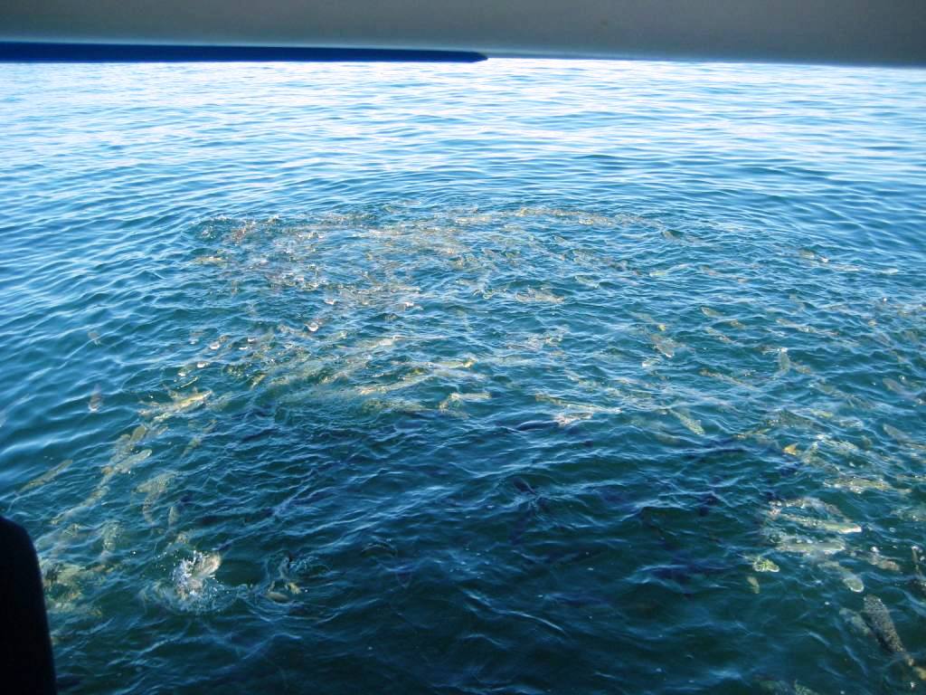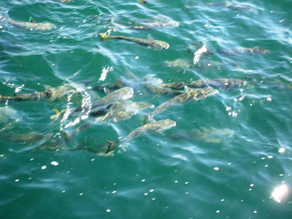 Oh, the wonders a good night’s sleep works on your body! Bright eyed and bushy tailed we greet the day –another gorgeous one!-. Mega-coffee in hand we look around the anchorage to see who’s here, since yesterday we were too hazy-brained to notice. There’s a sprinkle of boats here, a couple of them we know and many others we don’t (but soon will!). As we’re pointing to each other various pretty spots on the beach, a loud splashy noise erupts all around us. We look in the clear water and see literally hundreds of good-sized fish swimming barely below the surface, occasionally jumping, swerving en-masse, just happy to be alive I guess… Or trying to escape a bigger predator? They are soon joined by another huge group of smaller silvery blue fish that decides to hang out under Camelot’s wide, welcoming belly. This racket goes on for a good hour, it’s a very entertaining show. And yet, we are unable to determine which kind of fish they are! I need a book on fish species, soon….
