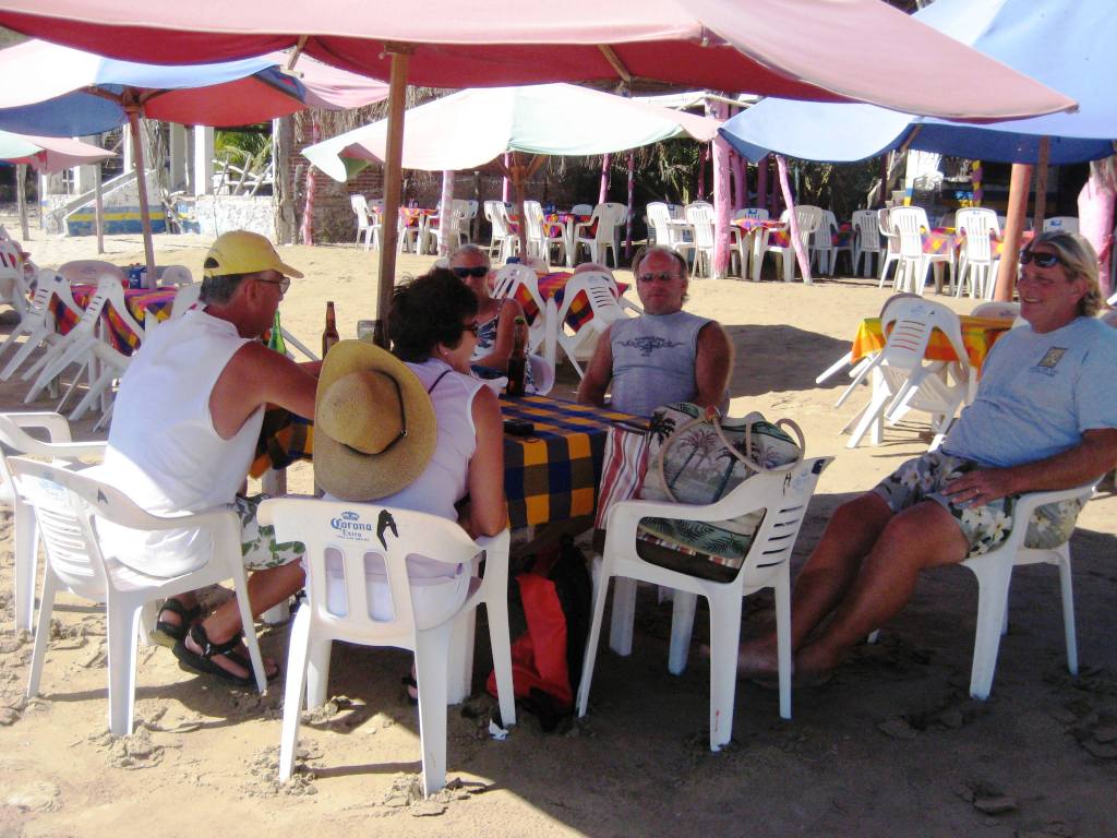 We find a group of cruisers already sitting in what’s possibly the best spot for beach-watching, so we just grab chairs and join them. I’m terrible with names and my memory is rapidly vanishing, but there were Judy & Mike from Lunautica, Annie & Hugh from Serendipity, Lou & Klaus from White Shell and another couple whose name I’m sure I’ll remember later on…