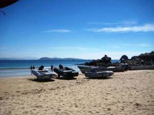 Later in the afternoon we decide to brave the surf and go to the beach to explore, socialize and get some tasty bite to eat. By sheer luck, or maybe because of Tom’s superior dinghy-landing skills, we manage to get on the beach reasonably dry.
