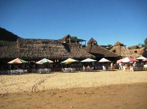 As soon as we set up camp (figuratively speaking), we get to the nearest palapa beach bar for a well-deserved beer for the Captain and a Coke for me.
