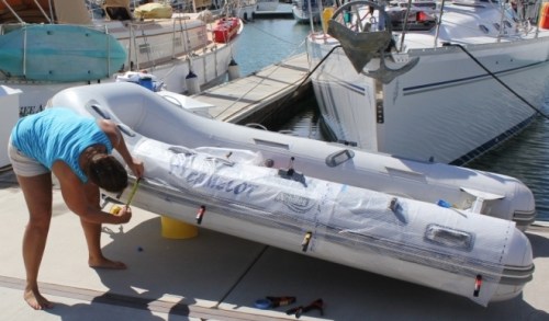During these last few weeks we also took a sightseeing trip here and there. Mainly, however, I spent 10 days with my nose glued to the sewing machine… I took upon myself the challenge of making dinghy chaps (the protective cover for our small inflatable boat). It’s something I wanted to do for a long time but always found excuses not to start, fearing I wouldn’t be up to the daunting task. I ham happy to report, however, that the blasted chaps are completed and in place. And they don’t look half as bad, either! Turns out I was able to do it, even if I didn’t think I had it in me. Tom spent those days making himself as small as possible and staying out of my way, not an easy task for him. I guess he was thoroughly intimidated by my multi-language, incessant swearing. I was a soul possessed!
