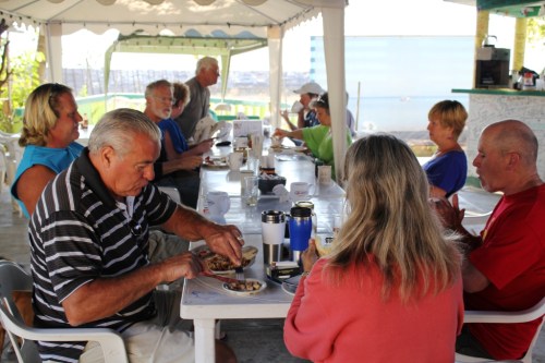 One day Tom extended an invitation to the owners Barry and Ana and a small group of other friends to go out sailing on Camelot. And so it was that on March 27th, another gorgeous day in paradise, we all went out on Banderas Bay to sail in no particular direction, just following the gentle breeze wherever it would take us. It was a very enjoyable experience. There were ten of us: Barry and Ana, their son Lalo with his wife Flor, Crazy Mike, Texas John, India and Terry.