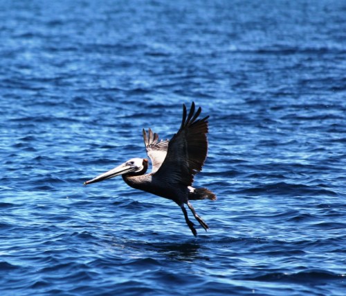 tanker joins us on the right, a ferry leaves the terminal on our left, a huge fishing vessel crosses our path and a couple of big powerboats approach fast in front of us. And here I was, camera in hand, wanting to take pictures of the welcoming party of Pelicans, Dolphins and jumping Rays… Forget it. I barely have time to shoot a couple of not-so-great shots…