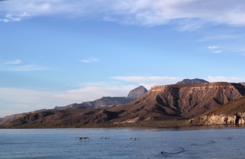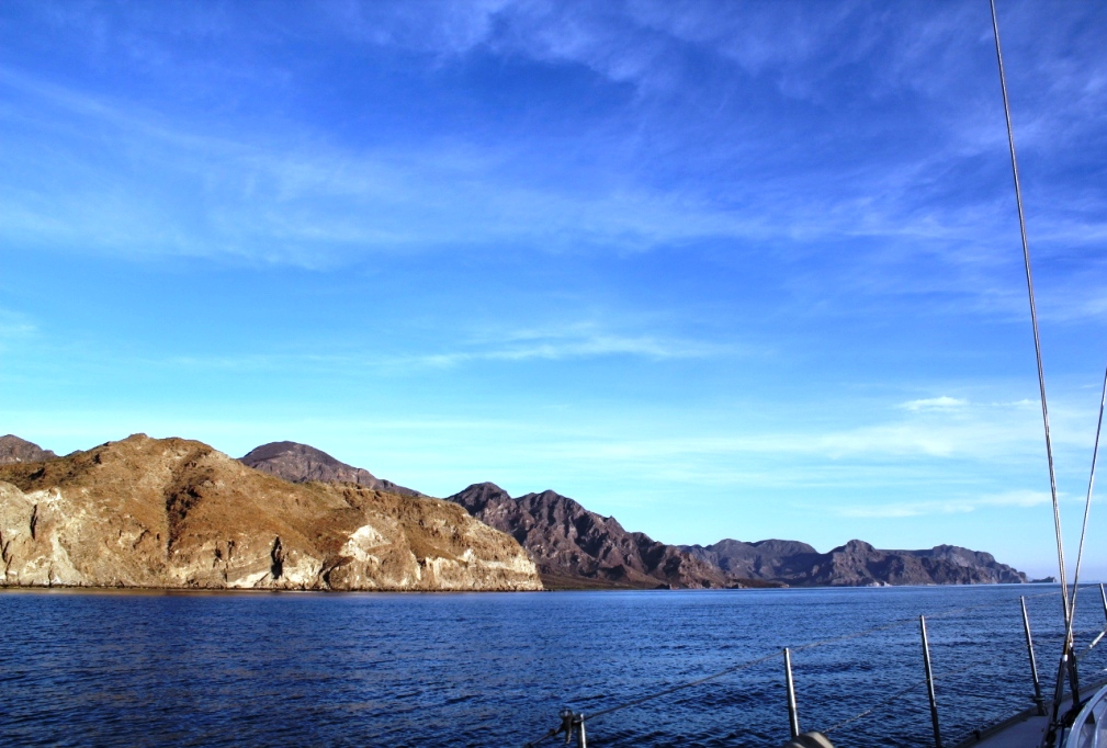 With Camelot well provisioned, fueled up and clean, we leave Costa Baja – La Paz aiming for San Evaristo, our first stop of many in the Sea Of Cortez. It’s a 7 hour ride, the day is radiant, no traffic on the water. Tom settles down reading while I keep watch armed with my camera. We pass Espiritu Santo and Partida Islands, gorgeous even from a distance. It’s a quiet and uneventful trip; we encounter a cargo ship and a couple of sailboats going South. Needless to say, my camera is working overtime.