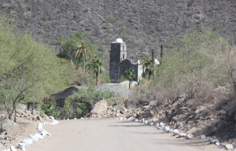 As we approached San Javier we noticed painted white rocks marking the side of the road, which was still unpaved. Around the next corner we came to a large arched gate and once