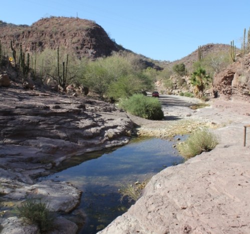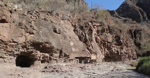 The area has an arroyo (small river) with trickling water, keeping most of the plants and palms green. Although there is no consensus on the reason or meaning of the cave