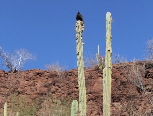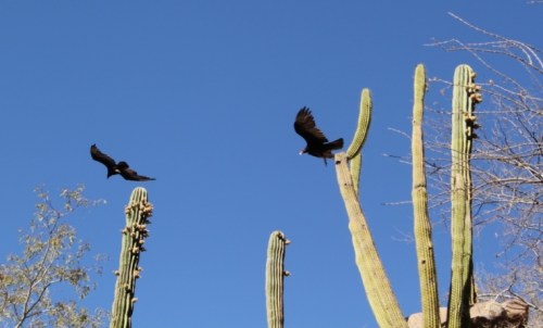 While admiring the cave paintings we noticed two Turkey Vultures eye balling us from a distance. As we moved they would hop from one cactus to the next, following us… We
