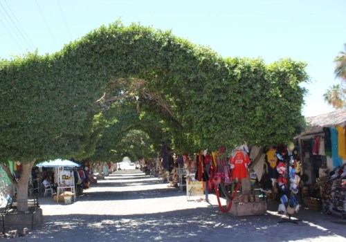 The tourist shopping district is located just south of the mission and has large bush trees stretching over the road, forming a nicely shaded tunnel – much appreciated in the 95 degree day. We had lunch in a small restaurant, which featured various Mexican foods and fresh caught fish from the Sea.