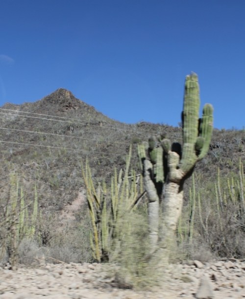 After that, we decided on a whim to head west into the Baja Desert and visit the town of San Javier. As we left Loreto and turned off the main highway we saw the Baja Desert in all its beauty and starkness. It is hard to imagine anything living or growing out there, but the land had various kinds of grasses, bushes and the ever present cactus. The desert hills and mountains are the most prominent features, with odd shapes and flat mesas with colors ranging from brown to brilliant reds.