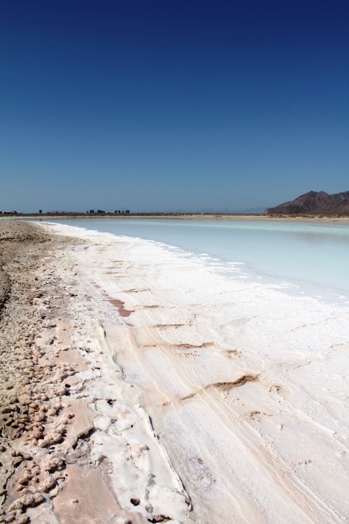 We take a stroll in the blazing sun, our curiosity pushing us to walk a long way to the salt ponds. It’s a very stark environment, fascinating and unique in its contrast of colors.