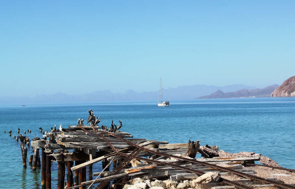 We spend three days in Bahia Salinas, thanks to a pesky northerly wind that we really don’t want to fight against. Sadly, it wasn’t conducive for swimming either… We wanted to visit the sunken remains of a tuna boat in the bay, gone under in the mid 80’s, now a natural reef teeming with marine life with plenty of colorful fish enjoying the wreck. But we had to settle for just taking a tour around it on our dinghy, and it still was very interesting. Of course on the morning of our departure there was no wind, the water was crystal-clear, the white sands of the half-moon shaped beach beckoning. Story of my life…