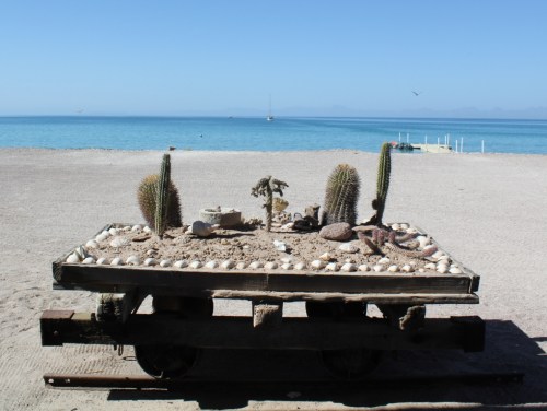It’s eerie to see the remains of the railway once used to carry the salt to the waiting ships, now good only as a perch for the birds. The railway cars have been transformed into creative garden containers.