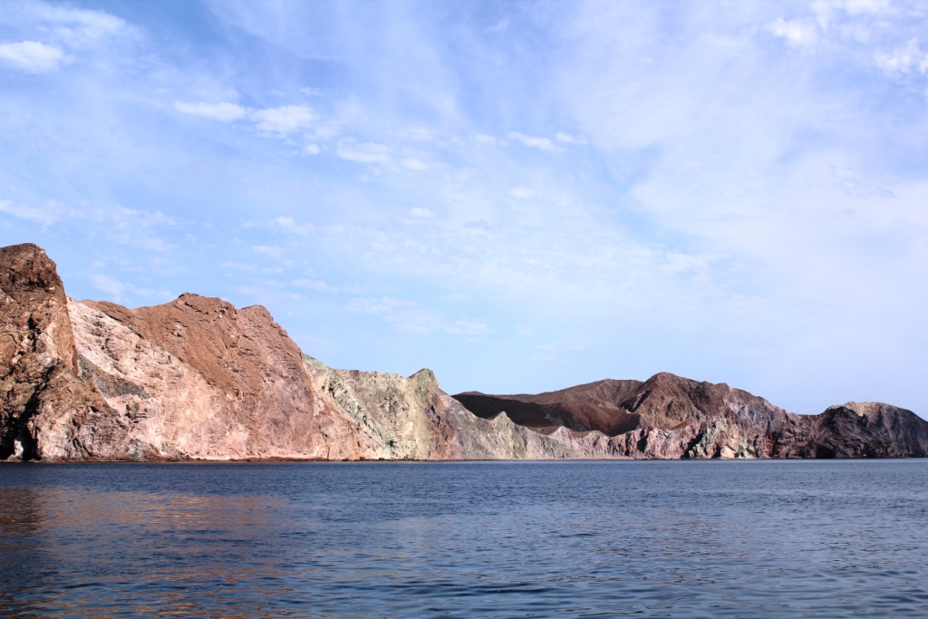 But my disappointment is soon forgotten as we round the corner of Isla Carmen. The easternmost side of the island is known as the Painted Cliffs. It’s yet another proof that Nature is the true inspirer of artists. This natural geological marvel coupled with the work of wind and water creates an astonishingly breathtaking backdrop.