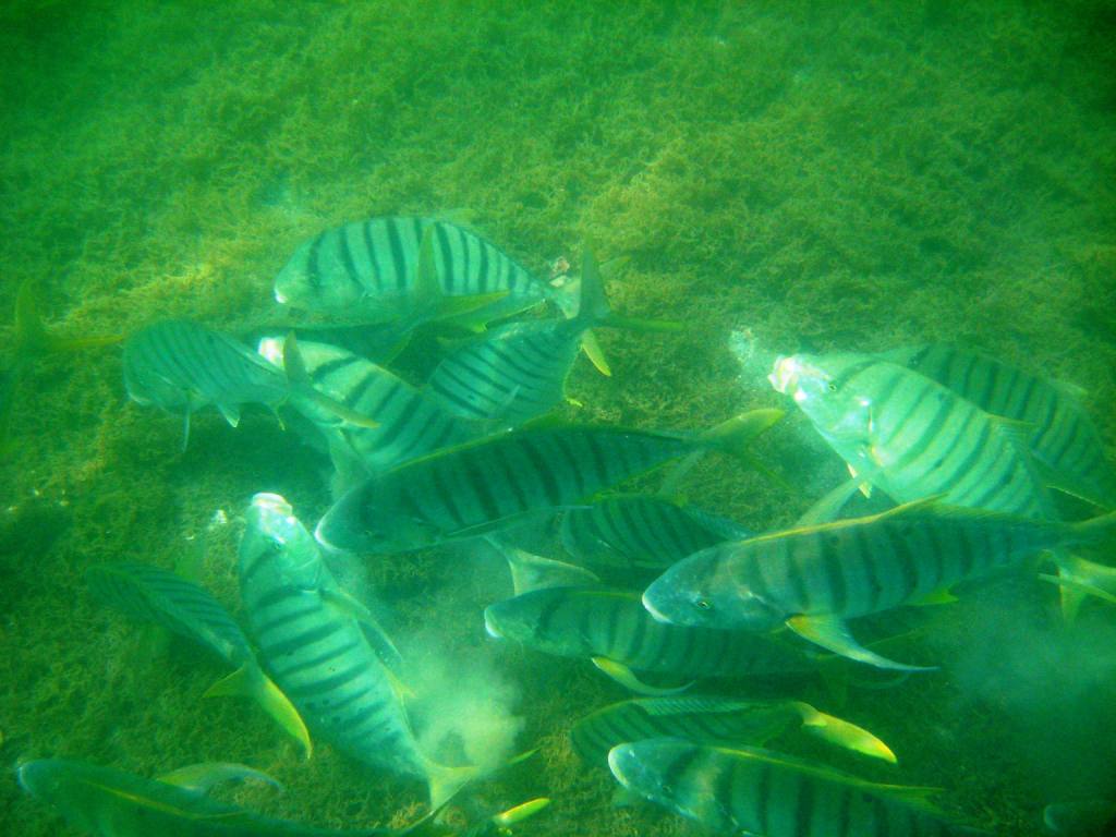 Today we go visit Isla Bargo, a small islet about a mile from out home-base. It’s a straight shot, a fast dinghy ride of maybe five minutes. Tom thinks the island used to be a volcano, the shape seems to suggest as much but we find nothing to corroborate his theory. Better go underwater and investigate…