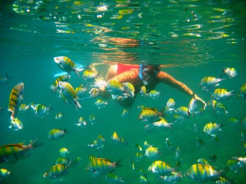 It’s amazingly beautiful down there. We end up staying in the water for such a long time, our hands are all pruned-up! We walk the small beach, observing our surroundings. So many birds, colorful and lively, are all around us. And they’re not shy, some flying very close to us, others curiously observing us from their perch.