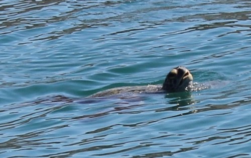 This little bay is home –or playing ground- to so many species. We get a variety of visitors: sharks, turtles, rays. Some of them, like this turtle, like to hang around every day for hours.