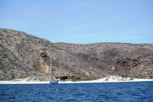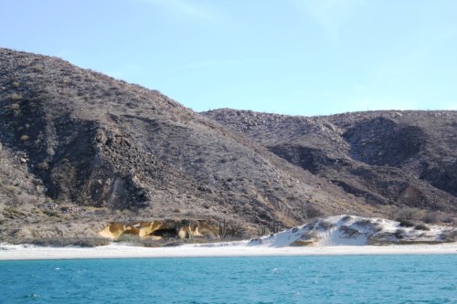 We spend a few hours thoroughly exploring our surroundings by dinghy, discovering a tiny cove on the side of the bay where –surprise!- the small Mexican Army contingent has set camp. Tom immediately decides to go visit the guys, so we beach the dinghy right in front of their barracks.