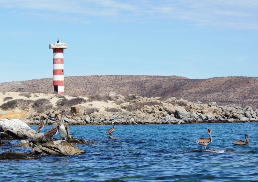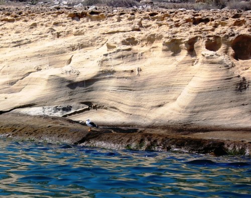 But there’s absolutely no one around! Just a couple of small boats tied up to a dock, a few well-worn small buildings, a skittish, skinny cow that disappears as soon as we set foot on the shore. Totally deserted, no sign of the boys. We leave pretty soon and slowly return to Camelot, after taking my customary hundred of pictures of everything surrounding me: birds, rocks, lighthouse, caves, giant cactus.