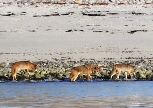 On the morning on Tom’s birthday there are THREE coyotes on the beach, all very wisely walking in the water, cooling off their paws. We spend quite some time observing them, before we decide we’ve seen enough of San Francisquito.
