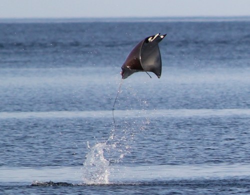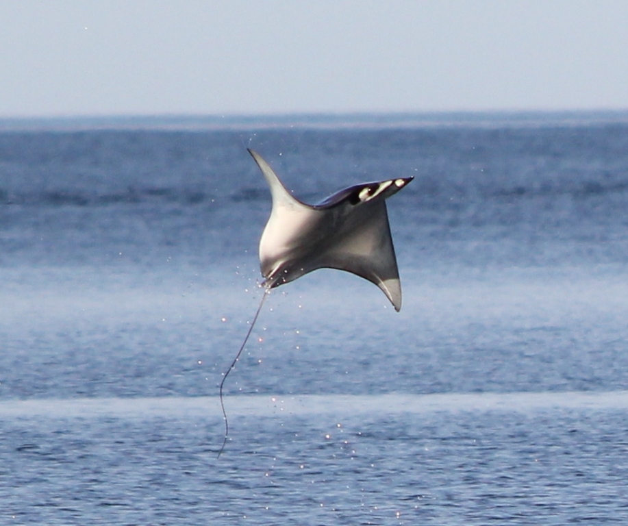 After dinner, as a special Birthday present for Tom -and possibly a reward for my sweaty laboring- we get to enjoy the most spectacular show: a group of Devil Rays delight us for over an hour with their acrobatics, jumping out of the water, shooting many feet up in the air, twisting and turning before slapping loudly back in the water.
