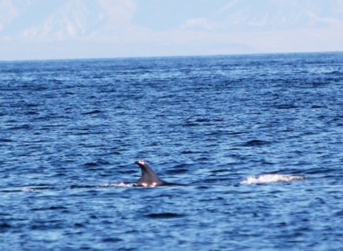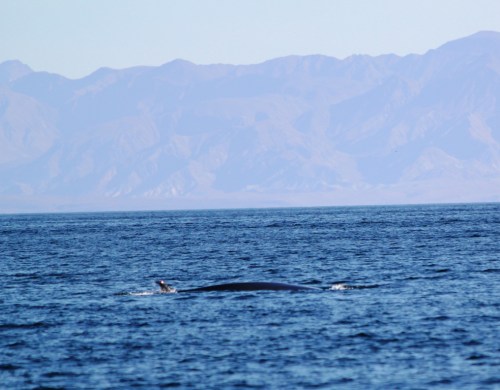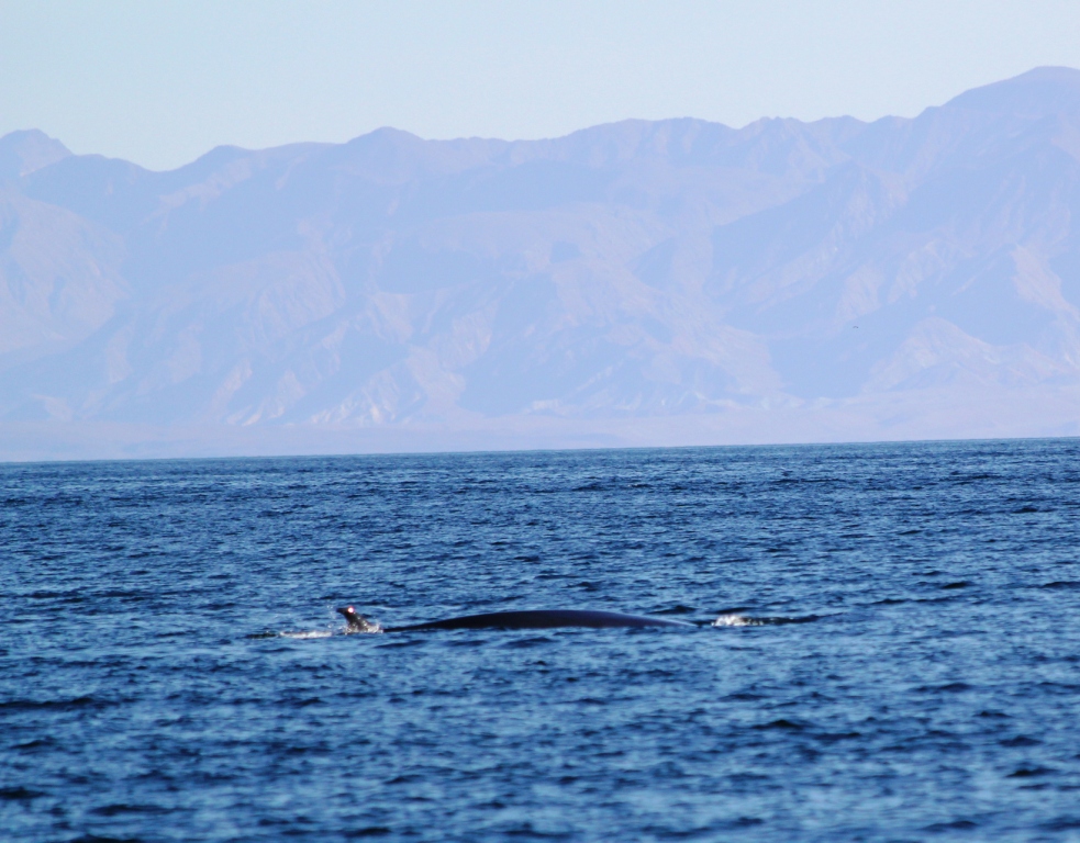 The two whales come in the bay a few times, usually in the morning, quiet yet massive presences that make me slightly apprehensive when they gently swim close by the boats.