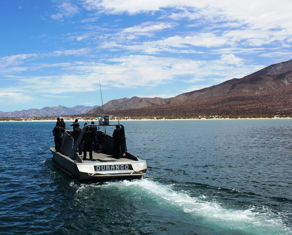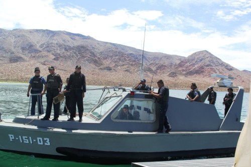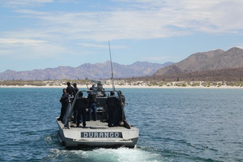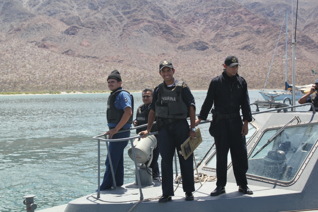 Formalities completed, he –FINALLY!- opens up in a wide and friendly smile, introduces himself as Fernando, wishes us a pleasant stay in his country which he hopes we are enjoying so far, and even consents to my request of taking a picture of his boat and crew. Wow! Talk about an instant transformation! As Fernando and his sidekick leave Camelot, stepping gracefully back to their vessel, the whole crew lightens up. Smiles, greetings, arms waving –as much as the rifles allow them to-, they leave us to go to the next sailboat. You’d think they just left a great party, so happy they look! Tom murmurs in my ear “Good enough for you?”. Yeah, I say, now I like them better.