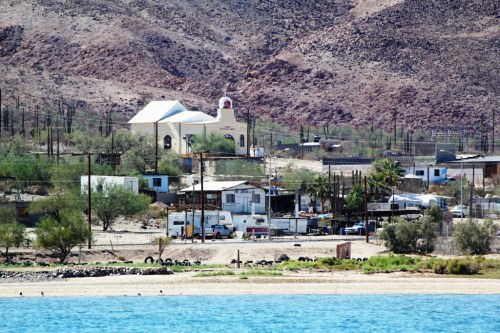 By now we’re the last boat left in La Mona, and my supplies of fresh vegetables and some other staples are dwindling. We move to the anchorage in front of the village of Bahia de Los Angeles, just a little over 30 minutes away.