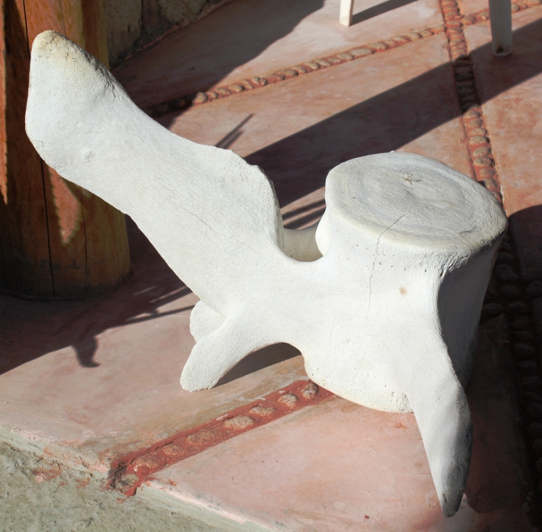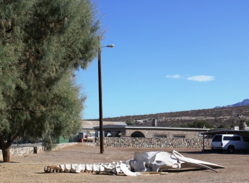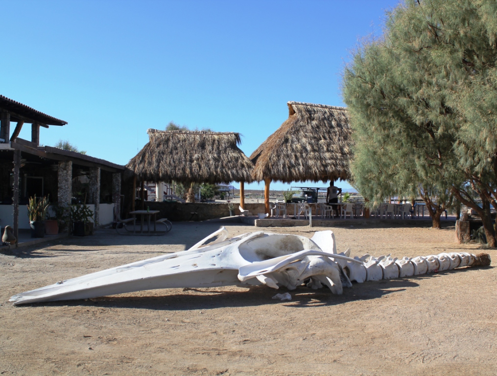 Another pretty place! When I say pretty I don’t mean touristic, no palm trees swaying or shimmering swimming pools here… It’s more of a primitive prettiness. The colorful buildings, the improbable landmarks, the four-lane highway running through the village while every other road is basically a dirt path, huge skulls and partial skeleton of whales displayed as yard ornaments, everything gives this place a very singular flavor. This is a true, small Mexican beach town.