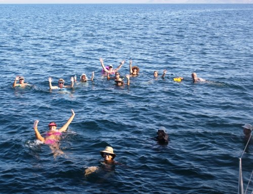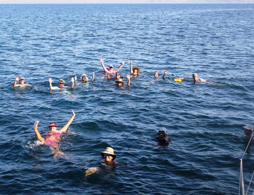 The days before and after the Party are spent visiting with other cruisers, exchanging books, relaxing and above all religiously attending the traditional Four O’Clock Swim. This is the most fun one can get daily. Everybody meets at someone’s boat –we all alternate being host of the day-, we park our dinghies behind it and jump in the water. There we float, swim, chat, laugh, catch up, exchange information, make plans and generally have a blast for about an hour or two. Or until we’re all “pruned up”, thoroughly pickled.
