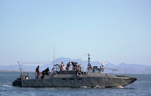 This new day also brings a surprise: a small Mexican Navy Patrol Boat, anchored right on our starboard side.