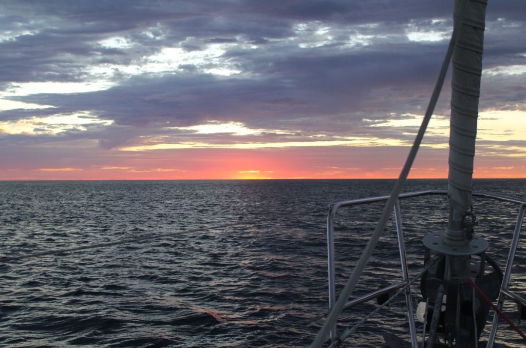 Up at the crack of dawn! Actually, it’s still dark as we pull up the anchor… But we like to leave early in the morning, and I just love to see the sun rising: one Mother Nature’s best performances.