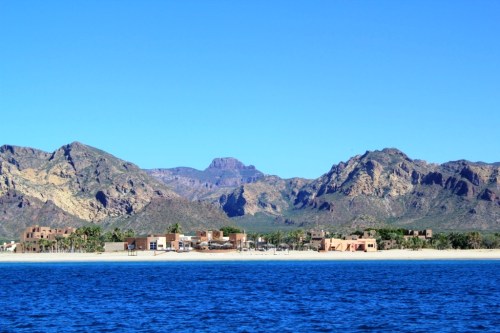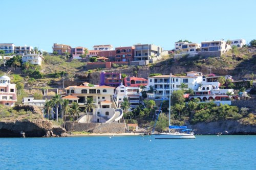 The world looks gorgeous, this morning! Amazing what a good night’s sleep can do to your batteries… Anyway, we take stock of our surroundings while enjoying our coffee. This bay is a jewel! White, sandy beaches backed by the rugged Tetakawi Mountain (Tetas de Cabras / Goat’s Teats). Lots of vacation homes and a couple of hotels dot the bay.