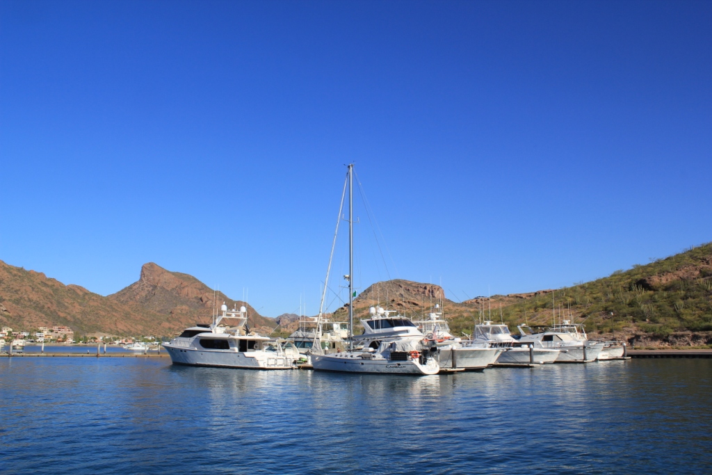 We ended up staying only three days here. The winds started being pesky, even in the bay, and it was getting uncomfortable. Besides, the well-protected San Carlos Marina is just 8 miles down. So on a very windy morning we left Bahia Algodones. The waves were about 6 to 8 feet high, which made for an interesting ride. I have been spoiled for months with calm seas, so