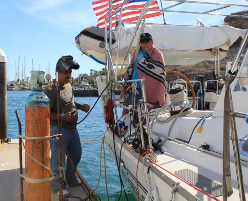 We’re still in San Carlos and we’re getting antsy. The weather is cooling considerably and Tom, Summer Boy that he is, is itching to go south where the sun always shines and the water is warmer … But we’re tied up here waiting for our stainless steel Monster Arch to be built.
