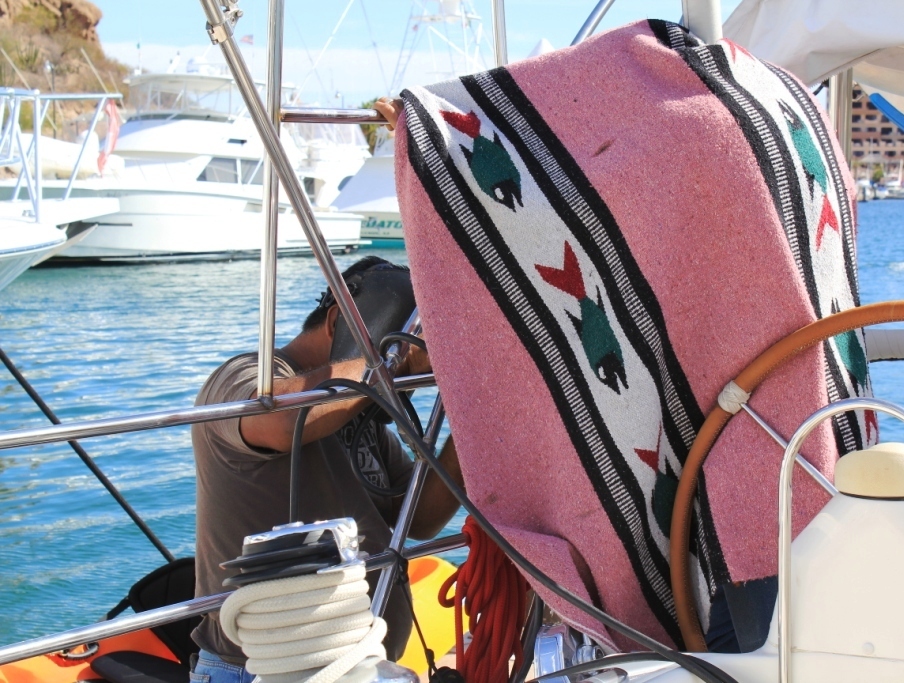Now it’s a matter of the weather cooperating for Gama to finish his masterpiece. Then it’ll be Tom’s turn to mount and connect them. Then and only then will we be able to leave San Carlos and start our trip south.