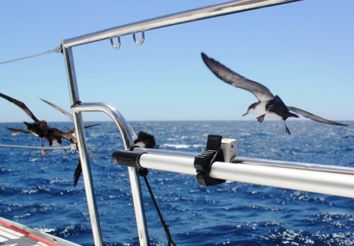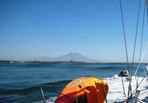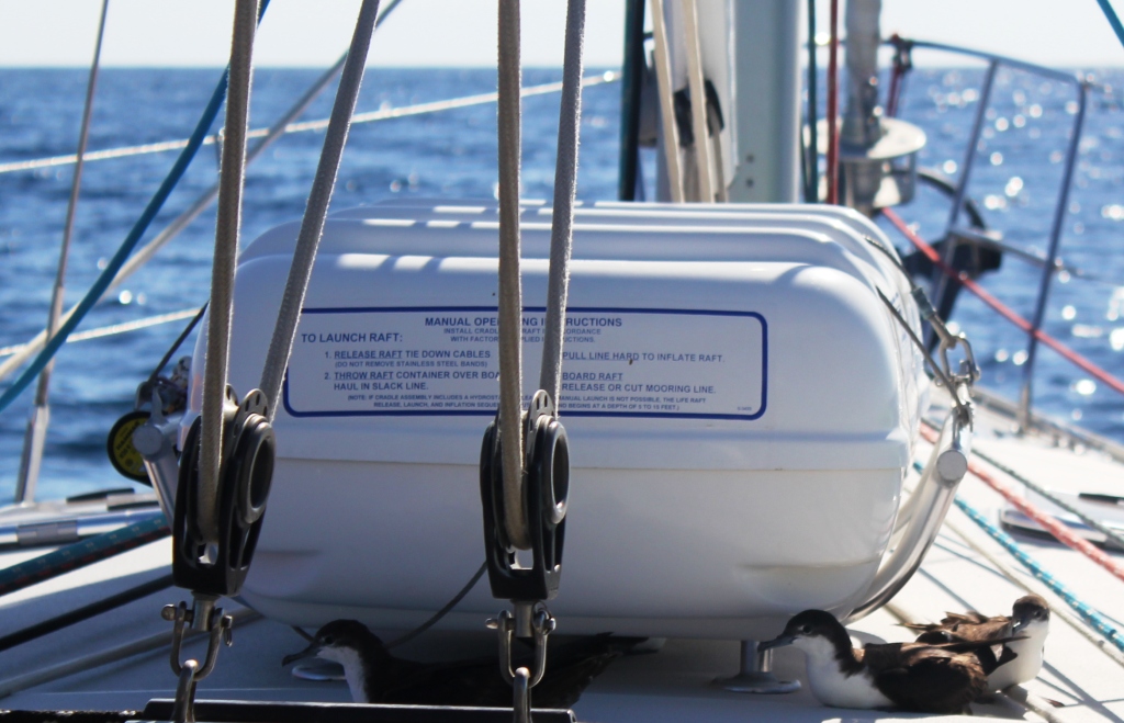 The long trip from Puerto Madero MX to Bahia del Sol in El Salvador is mostly uneventful and even a little boring, the only distraction provided by a bunch of small but fearless birds who hitched a ride on Camelot for a while, making themselves at home in the shade under the life raft.