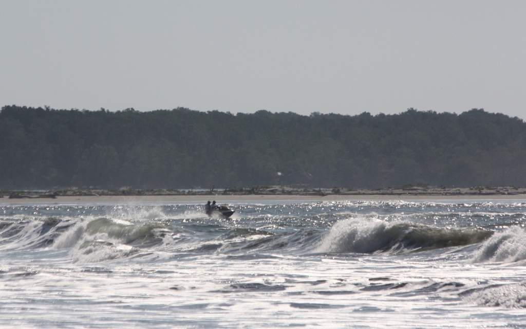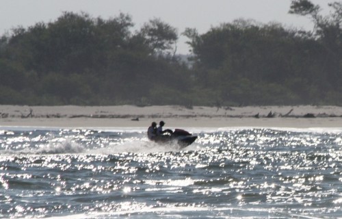 Rogelio the pilot is maneuvering the Jet Ski while Bill (the Rally’s organizer) perched on the back, radio in hand, provides instructions to correct our position.