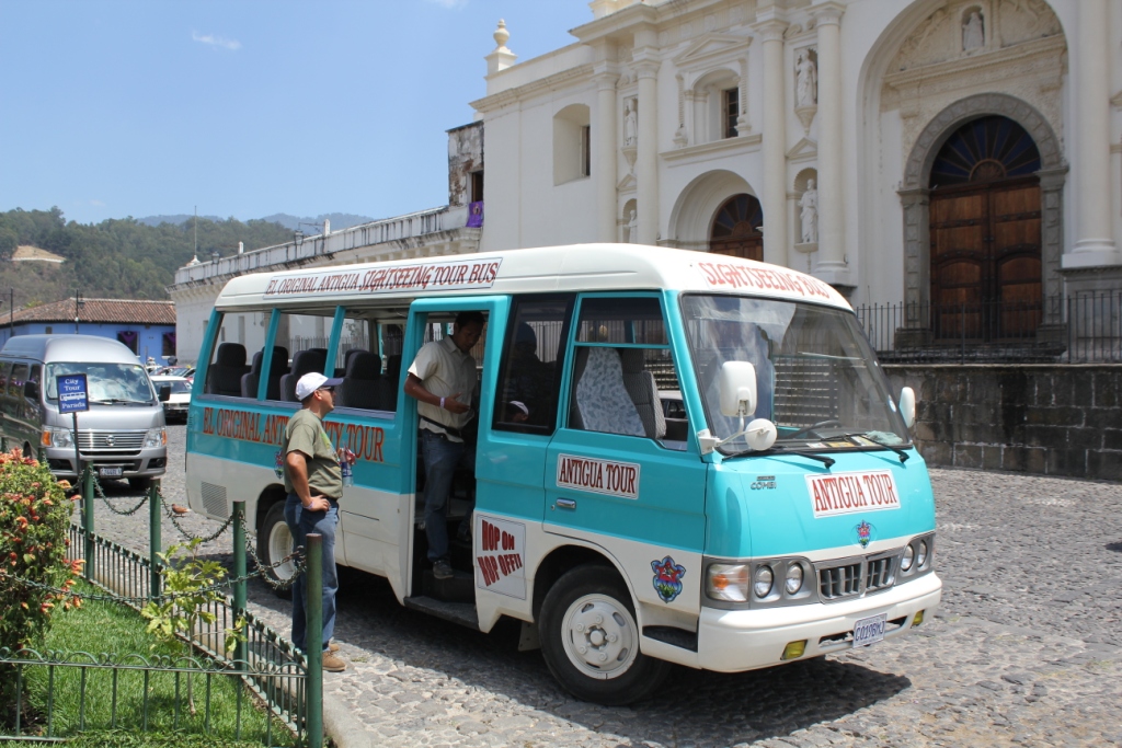 Our friendly driver Juan Carlos speaks perfect English as well: as it turns out, he spent many years living about 15 miles from where we used to live in California. Small world, isn’t it? And he has a wonderful sense of humor (what do they put in the water here???), knows his town inside-out and consistently declares his love and pride for Antigua while he illustrates the various sights.