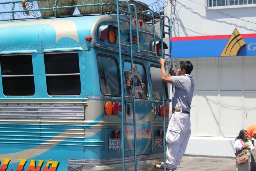 So we go thru the Border Dance. Off the van at El Salvador’s border, check out of the country, walk a few yards into Guatemala, check into the country. All this involves standing in line at times, having your passport thoroughly scrutinized and profusely stamped by both Countries’ officials, and at times having to pay a nominal fee (US$ 2  or 3) depending on the mood of the official on duty. Not much is consistent… Anyway, welcome to Guatemala!