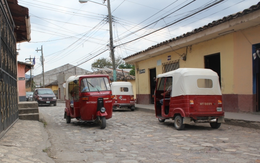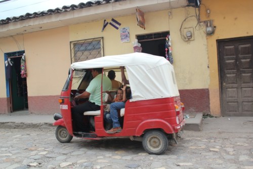 Copan is a small and pretty town with very steep and narrow cobblestone streets. There’s a lot of Gringos walking around, I guess everyone is here to visit the ruins just like us… The local “taxi cabs” are very interesting, too.