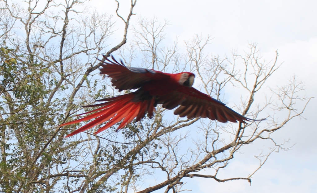 Upon entering the site we receive a warm welcome by a half-dozen parrots flying overhead. Flashes of red, green, blue are everywhere!