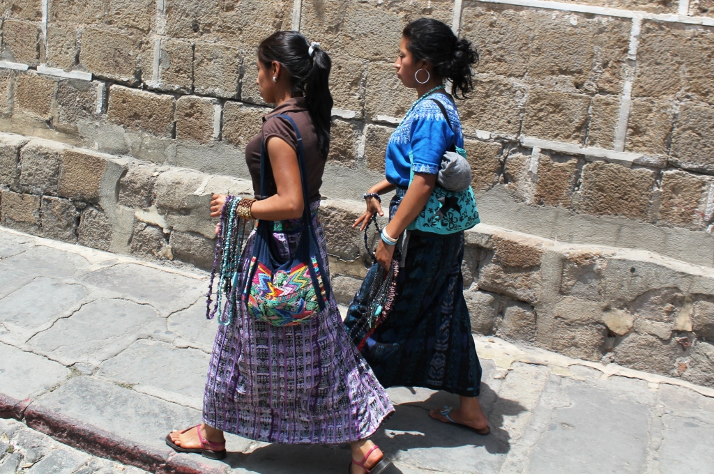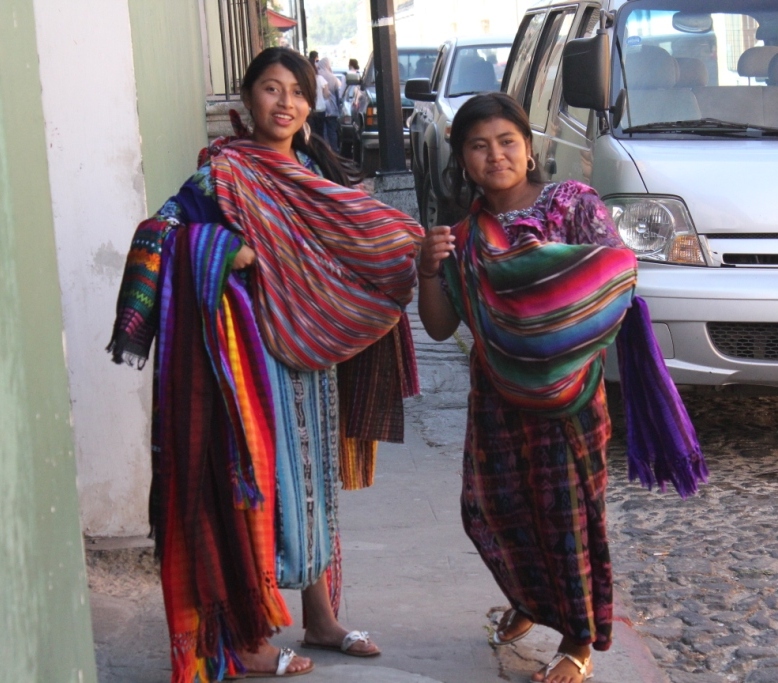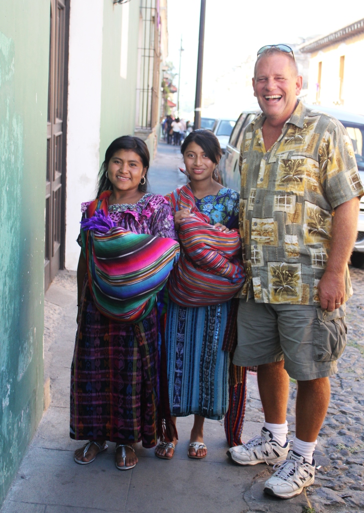 As soon as we step out of the hotel we are surrounded by two of the tiniest women I’ve ever seen. They’re Mayan young ladies, selling their hand-woven goods. Tiny they may be, but their personalities are certainly big and their persistence is legendary!