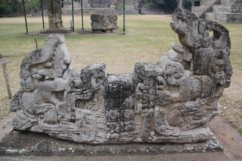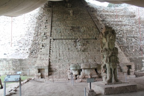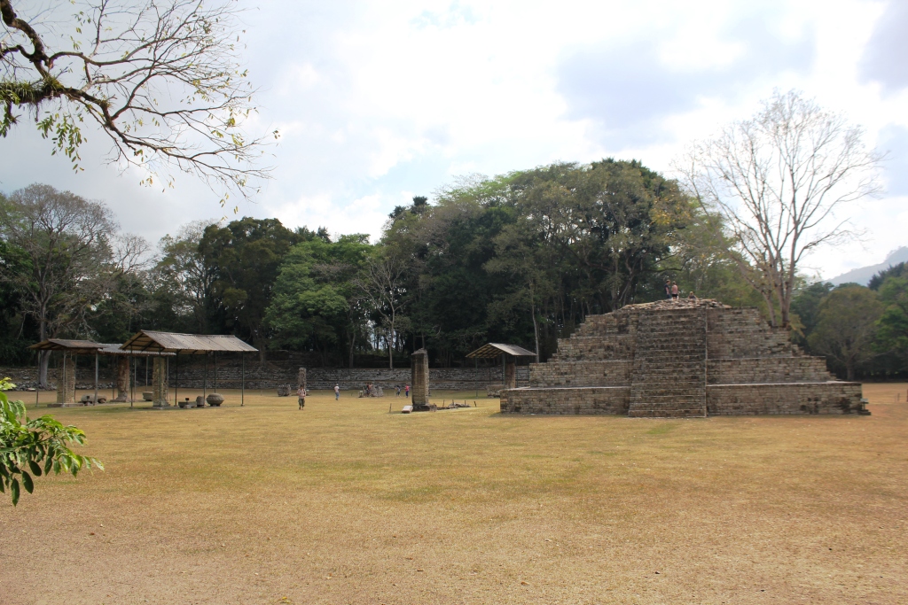 Nothing prepared me for the amazing sight that suddenly appears: a vast, flat, grassy field with well preserved ruins everywhere! There are steles, sacrificing altars, pyramids, sculptures, tombs, a soccer field and a huge building with 64 steps, an arena/stadium and more… Breathtaking!