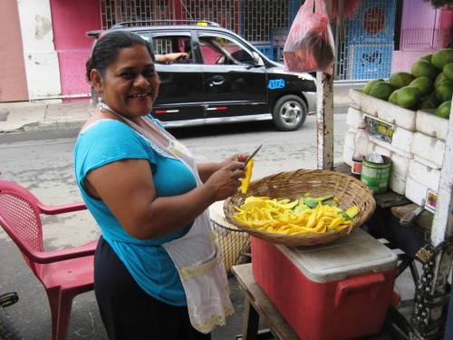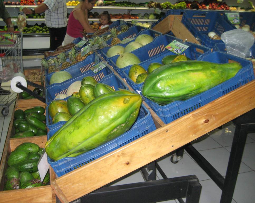 Sandra and I see a supermarket and go in to check out what’s available. Ah, air conditioning! This particular store, Supermercado Selecto, is at least two blocks in length and filled with anything you could wish for, including plenty of produce I have never seen before. We file that info away for future reference…